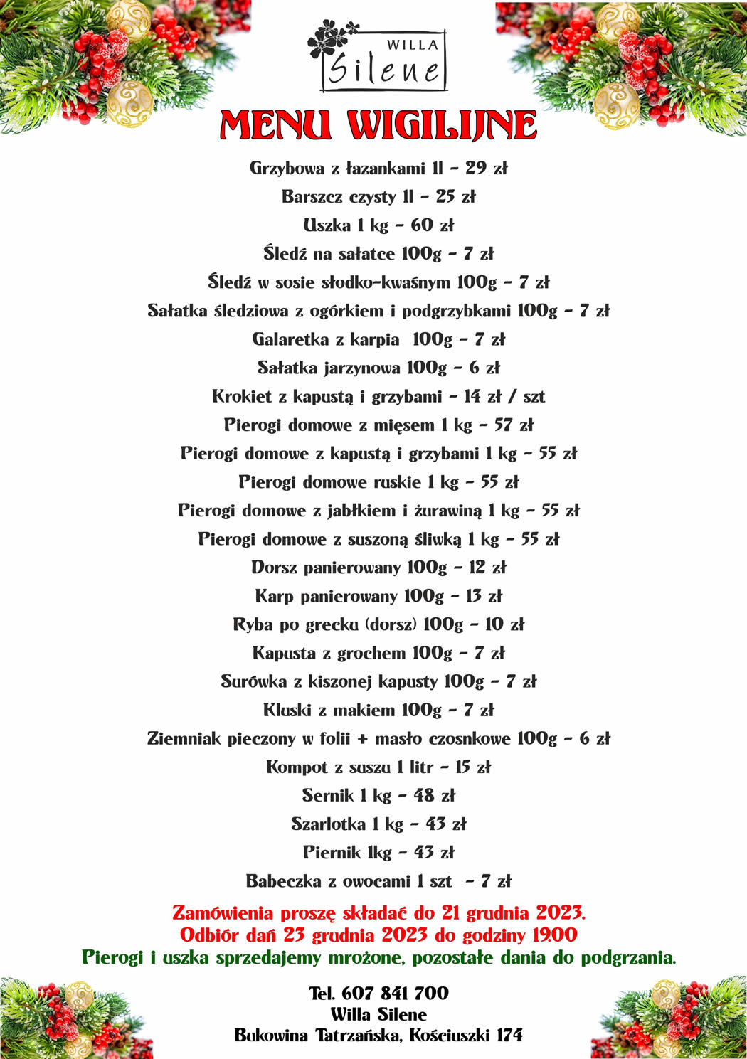 W restauracji zlokalizowanej w Willi Silene w Bukowinie Tatrzańskiej  skosztują Państwo zarówno tradycyjnych potraw regionalnych, jak i najlepszych dań kuchni polskiej. Wszystkie posiłki przygotowywane są domowymi sposobami,